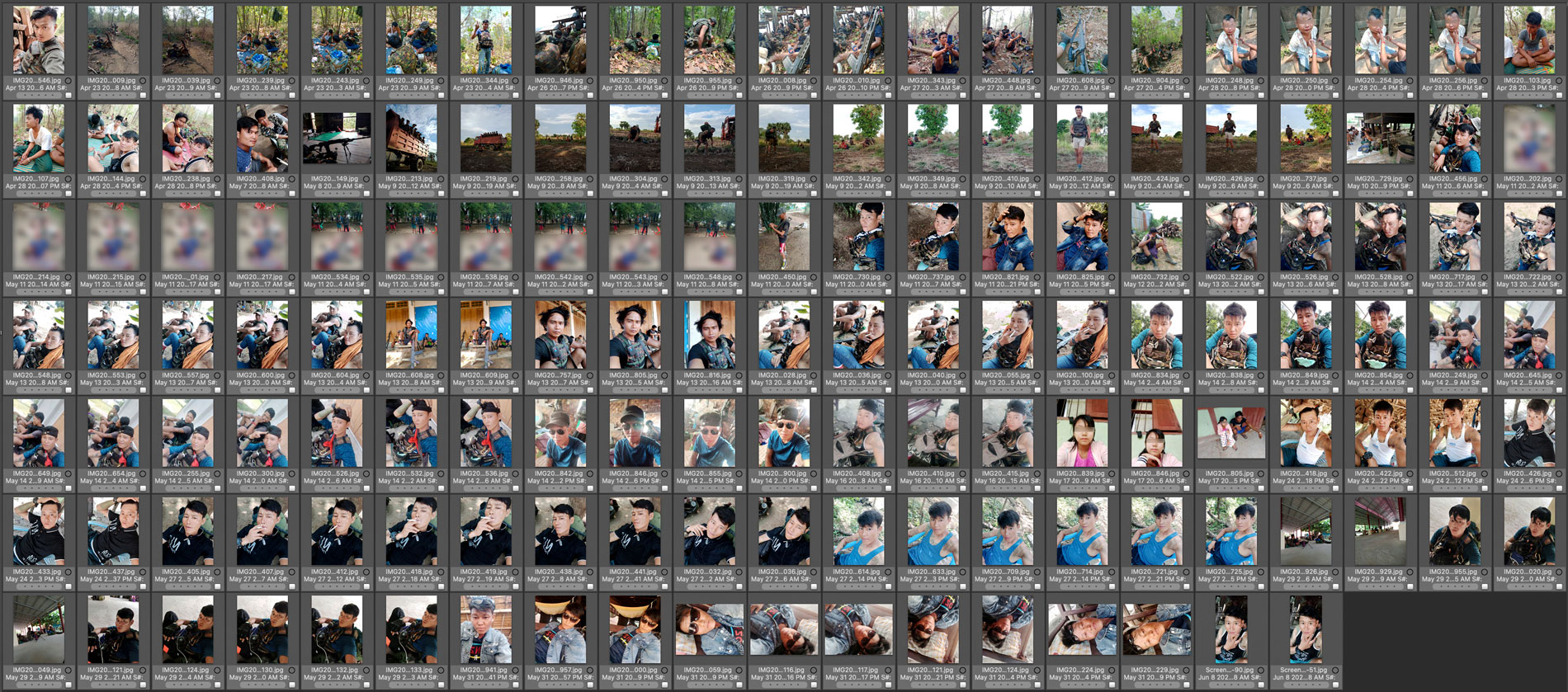 A closer look at the photos provides proof that these men serve in Myanmar’s military. Soldiers in the photos sport the arm badge of the Myanmar Army and, in at least one photo, the Northwest Military Command based in Sagaing. Soldiers are seen with bamboo baskets normally used as backpacks by junta soldiers. Numbers on rifle butts in the photos even help identify one military unit.